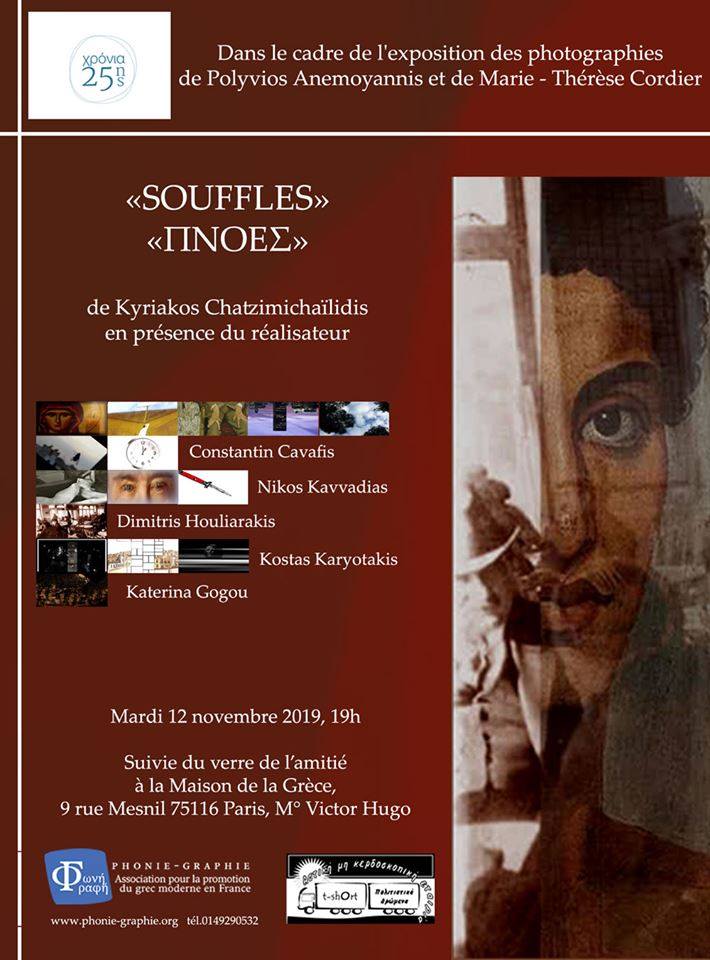 Την Τρίτη, 12 Νοεμβρίου 2019, στις 7 μ.μ., οι "ΠΝΟΕΣ" θα προβληθούν στο Παρίσι, στο Maison de la Grèce (9 Rue Mesnil, 75116 Paris), παρουσία του σκηνοθέτη τους Κυριάκου Χατζημιχαηλίδη, στο πλαίσιο των εκδηλώσεων για τα 25 χρόνια του Συλλόγου για τη διάδοση των νέων ελληνικών στη Γαλλία Phonie-Graphie.