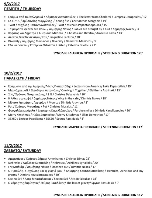 For the latest news on programme details, screening times and ticket reservations, please check out the film festival site: https://greekshortfilmfest.wordpress.com/