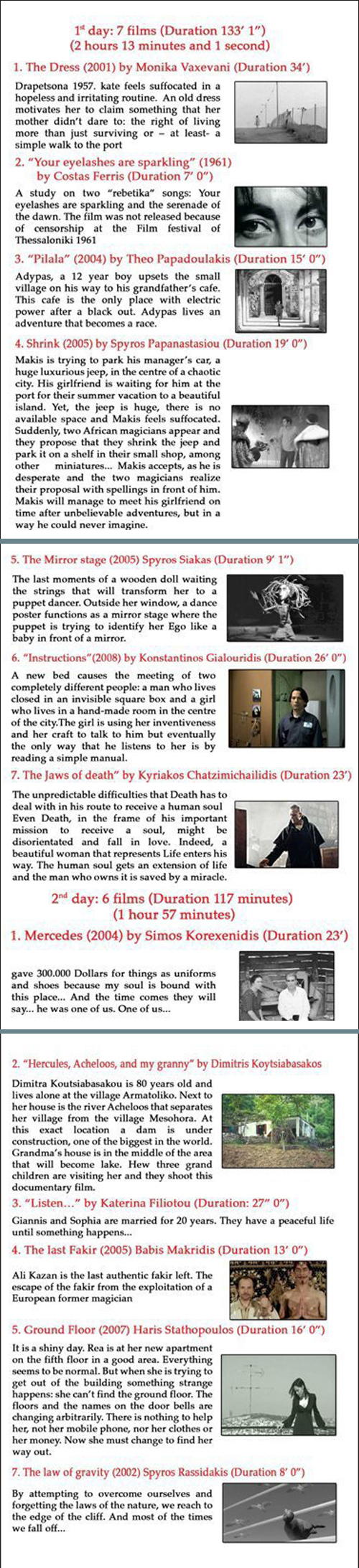 12 ταινίες προβλήθηκαν συνολικά και τις τρεις ημέρες: