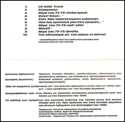 Σε μια δημιουργική συζήτηση με τους μουσικούς της ταινίας, Αντώνη Λιβιεράτο και Σωτήρη Δεμπόνο, λέμε να κάνουμε μια πρωτοπόρα κίνηση και να βγάλουμε την μουσική της ταινίας σε cd. Δεν είχε ξαναγίνει κάτι παρόμοιο, ειδικά σε επίπεδο επαγγελματικής εργασίας, πόσο δε μάλλον σχετικό με την κυκλοφορία του cd στην μουσική αγορά.