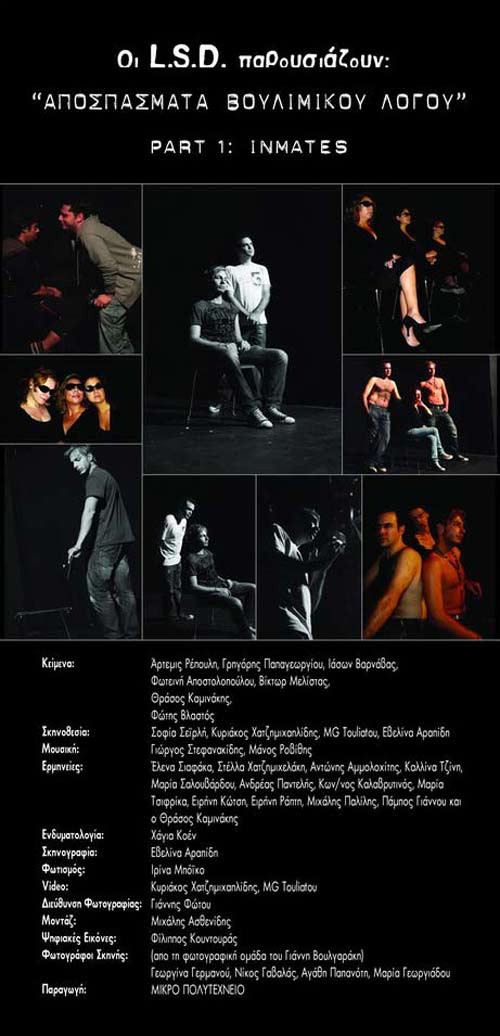 Ενα video για μια παράσταση. Θέατρο και multimedia στο "Φούρνο" από το μικρό πολυτεχνείο με την παράσταση "Αποσπάσματα βουλιμικού λόγου". Κείμενα που γεννήθηκαν από τον πυρήνα των ανθρώπων του μικρού πολυτεχνείου. Το νόστιμο χθες σε συγγραφή Φώτη Βλαστού και σκηνοθεσία δική μου, φτιαγμένο με μικρά ολιγόλεπτα video διεσπαρμένα μέσα στην παράσταση και ένα μεγαλύτερο να τις δίνει το φινάλε.