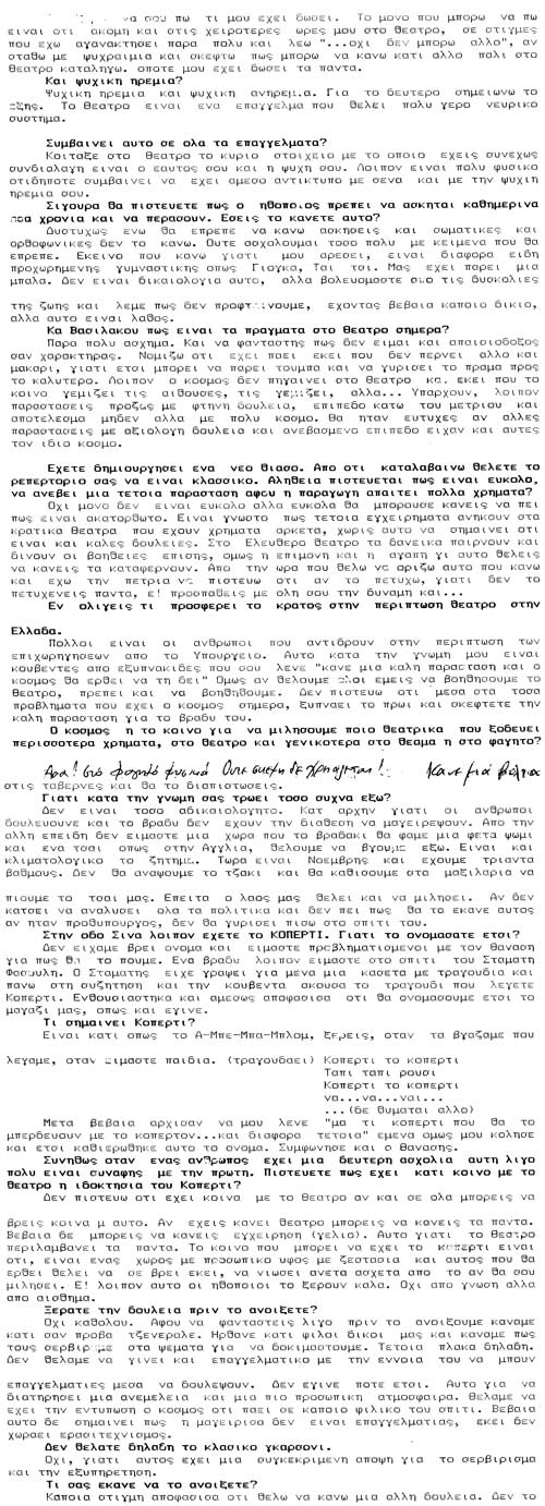 Η συνέντευξη δόθηκε απο την κυρία Βασιλάκου για το περιοδικό exit που ξεκίνησε να εκδίδεται στη Θεσσαλονίκη το 1985 περίπου. Το περιοδικό κυκλοφόρησε μόνο για δύο τεύχη και έκλεισε χρησιμοποιώντας μόνο τις δύο συνεντεύξεις που πήρα (Σπεράντζα Βρανά και Κατερίνα Βασιλάκου)