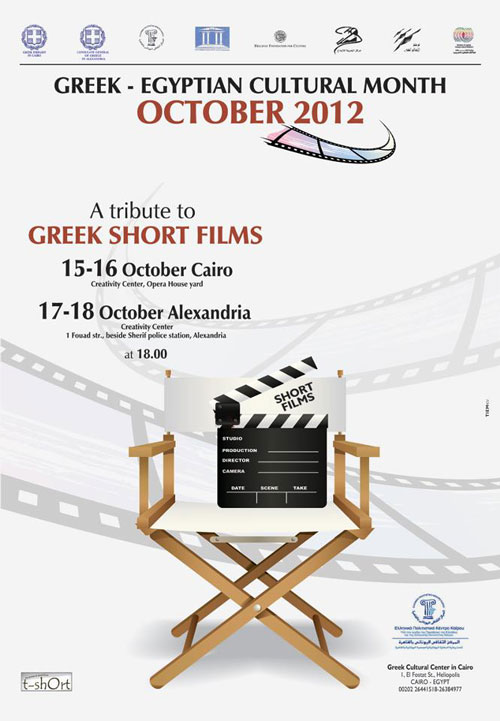 Ένα τετραήμερο προβολών ελληνικών ταινιών μικρού μήκους σε Κάιρο και Αλεξάνδρεια από την t-shOrt, στα πλαίσια των εκδηλώσεων «ΟΚΤΩΒΡΙΟΣ, ΕΛΛΗΝΟ-ΑΙΓΥΠΤΙΑΚΟΣ ΜΗΝΑΣ ΠΟΛΙΤΙΣΜΟΥ», που διοργανώνει το Ελληνικό Πολιτιστικό Κέ