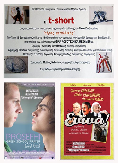 Με δυο ταινίες και μια παρουσίαση βιβλίου η t-shOrt συμμετέχει δυναμικά στο φετινό Φεστιβάλ Δράμας. Συγκεκριμένα: