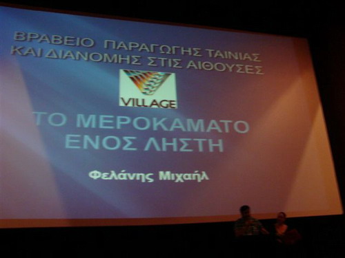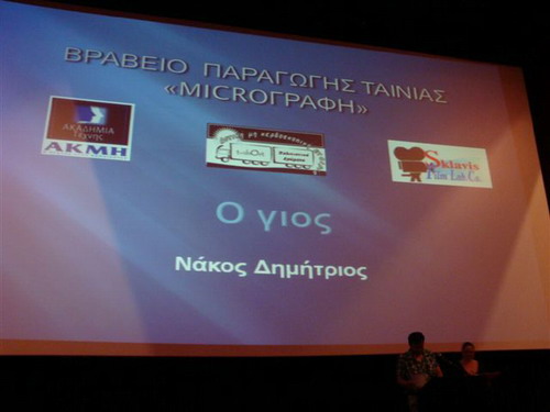 Από την απονομή στην αίθουσα των Village cinemas. Το βραβείο 'microγραφή"