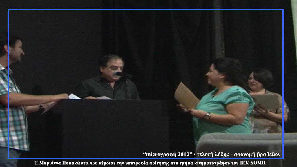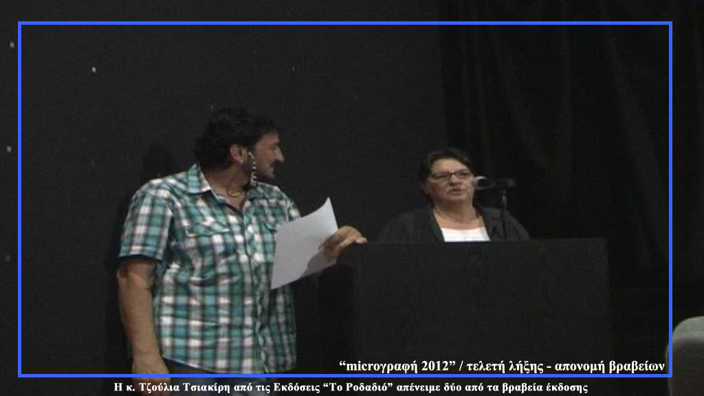 Φωτογραφίες από την εκδήλωση: ΤΕΛΕΤΗ ΑΠΟΝΟΜΗΣ ΒΡΑΒΕΙΩΝ ΤΟΥ 4ου ΔΙΑΓΩΝΙΣΜΟΥ ΠΟΛΥ ΜΙΚΡΟΥ ΣΕΝΑΡΙΟΥ «microγραφή 2012»
