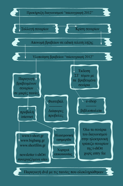 Από την προκήρυξη μέχρι την κατάληξή του, ο διαγωνισμός "microγραφή" ακολουθεί μια πορεία πολύ σημαντική σε κάθε στάδιο. Το παρακάτω σχεδιάγραμμα δίνει μια συνολική εικόνα για την πορεία αυτή.