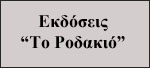 Εκδόσεις «ΤΟ ΡΟΔΑΚΙΟ». Λάτρεις της αισθητικής των τόνων ή ακόμα και "διαφορετικοί", αναζητούν τρόπους και καταφέρνουν να ξεχωρίσουν από τη μάζα, επιμένοντας, σε πείσμα των καιρών, να κυκλοφορούν με τόνους και πνεύματα όλα τους τα βιβλία, περίπου 30 τίτλους το χρόνο.